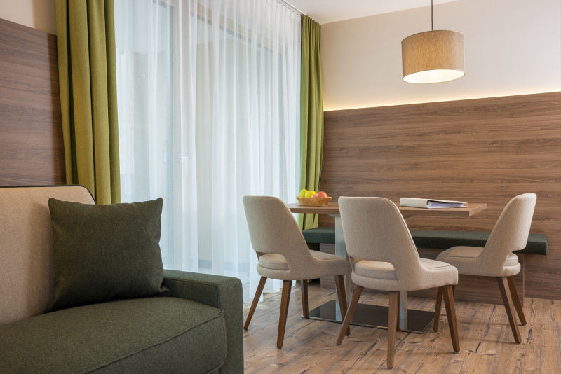 Alle unsere sieben Ferienwohnungen sind in modernem Stil gehalten und bieten einen herrlichen Blick auf den Reschensee. Sie können aus drei unterschiedlichen Größen wählen, wodurch Sie sicherlich die passende für sich und Ihre Liebsten finden werden. Jene mit 77 beziehungsweise 64 Quadratmetern sind selbst bei vier oder mehr Personen noch sehr geräumig. Suchen Sie nach etwas Besonderem, so ist die Suite optimal für Sie geeignet.
